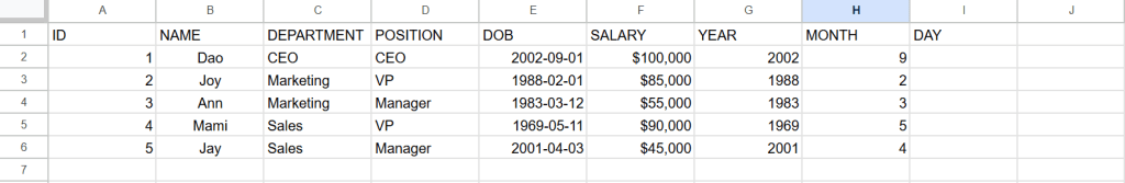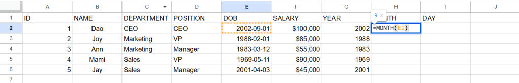 function MONTH ก็เช่นกัน