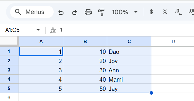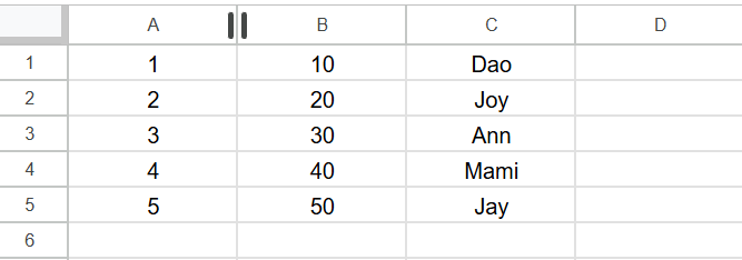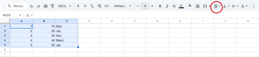 หากลองพิมลงใน Google Sheets จะสังเกตเห็นว่าข้อมูลตัวเลขจะอยู่ชิดขวา (Right Alignment) ข้อมูลตัวอักษรจะอยู่ชิดซ้าย (Left Alignment)