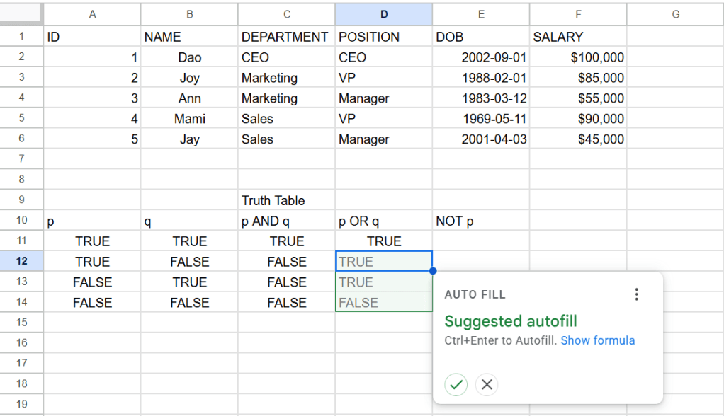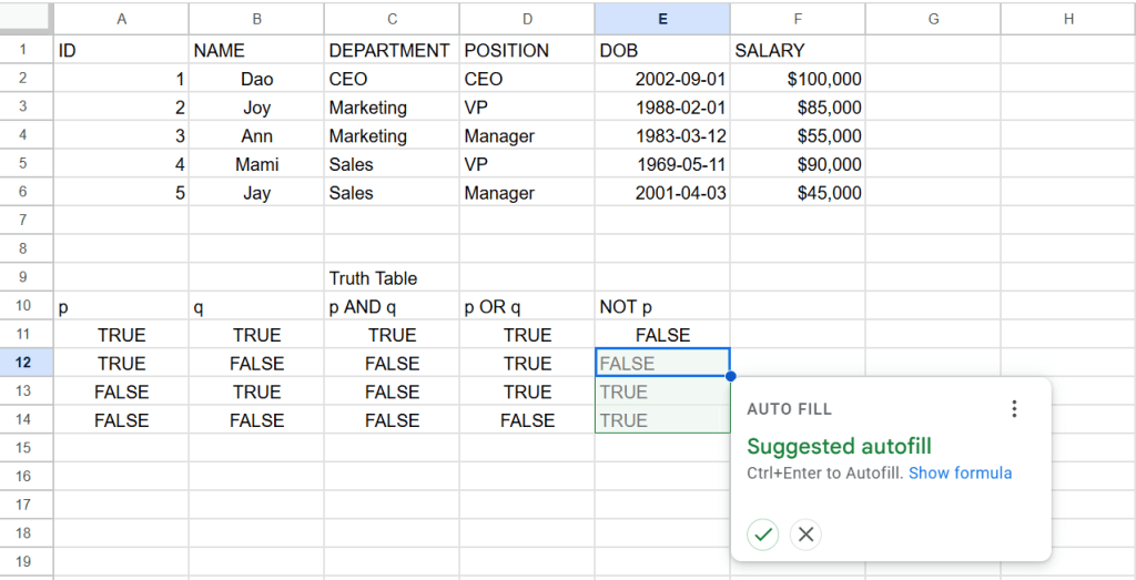 Google Sheets Shortcuts