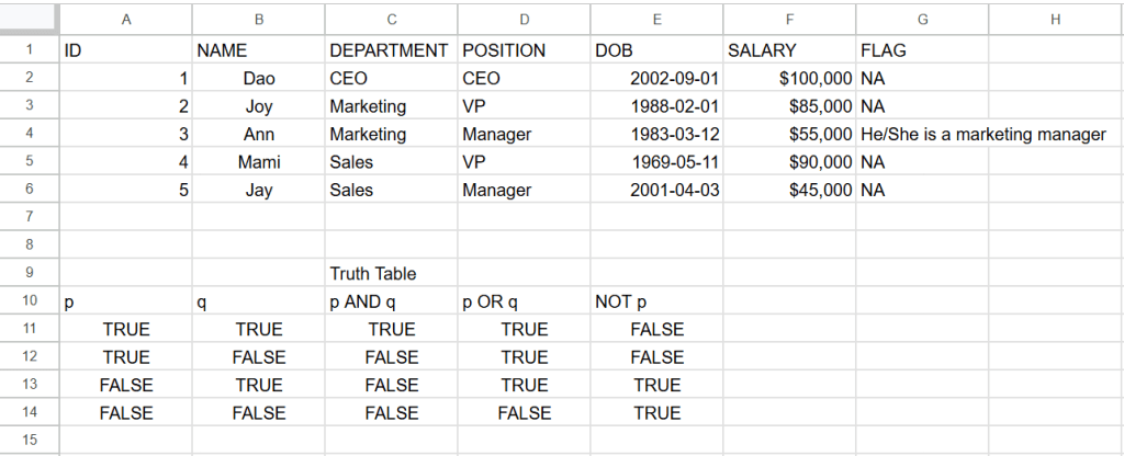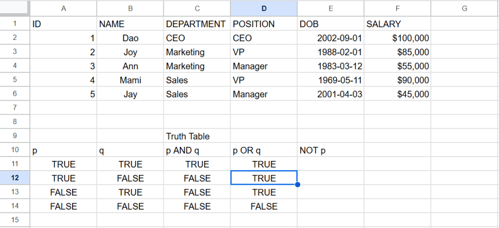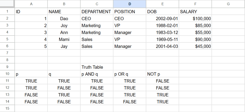 - AND OR NOT – การเขียน AND OR NOT เป็น logical operator เหมือนตอนมัธยมปลายที่เรียนตรรกศาสตร์ในวิชาคณิตศาสตร์ ที่มี เครื่องหมาย และ หรือ ตรงกันข้าม