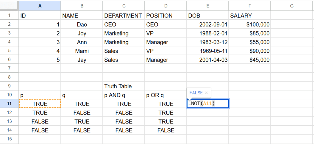 function NOT ใช้ =NOT(arg)