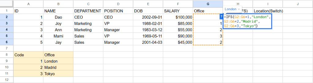 =SWITCH(G2:G6,